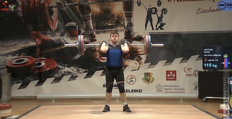 Szesnaste miejsce w kategorii do 110 kg zajął Adrian Grygiel, uzyskując 205 kg w dwuboju (90 kg w rwaniu i 115 kg w podrzucie).